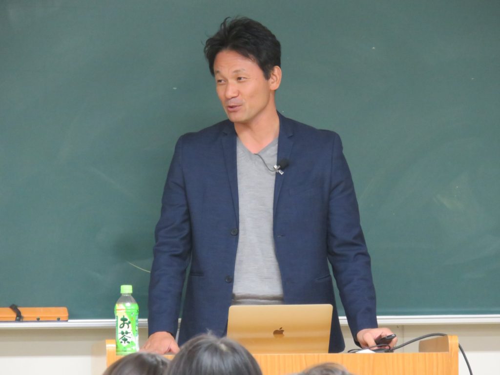 「起業家として挑戦」というテーマで、講師は総合政策学科を平成12年にご卒業の芳野裕士さんでした。