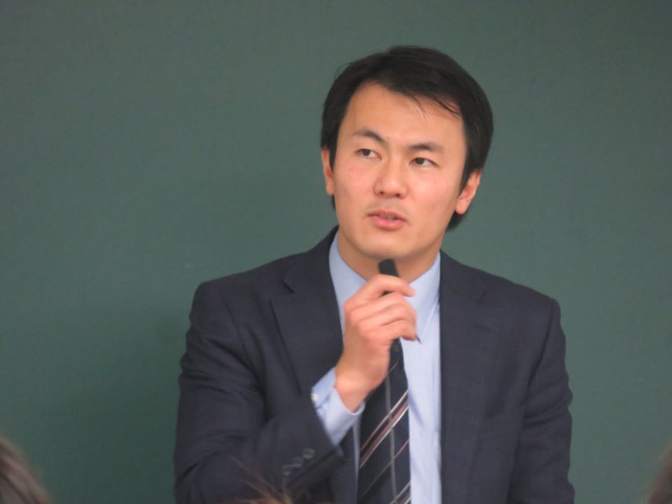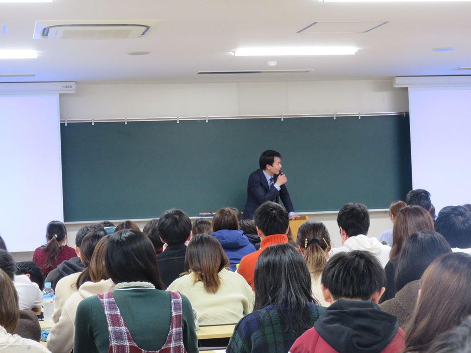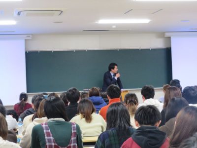 「弁護士として働く」というタイトルで、講師は総合政策学科を平成18年に卒業された玉井秀樹さんでした。