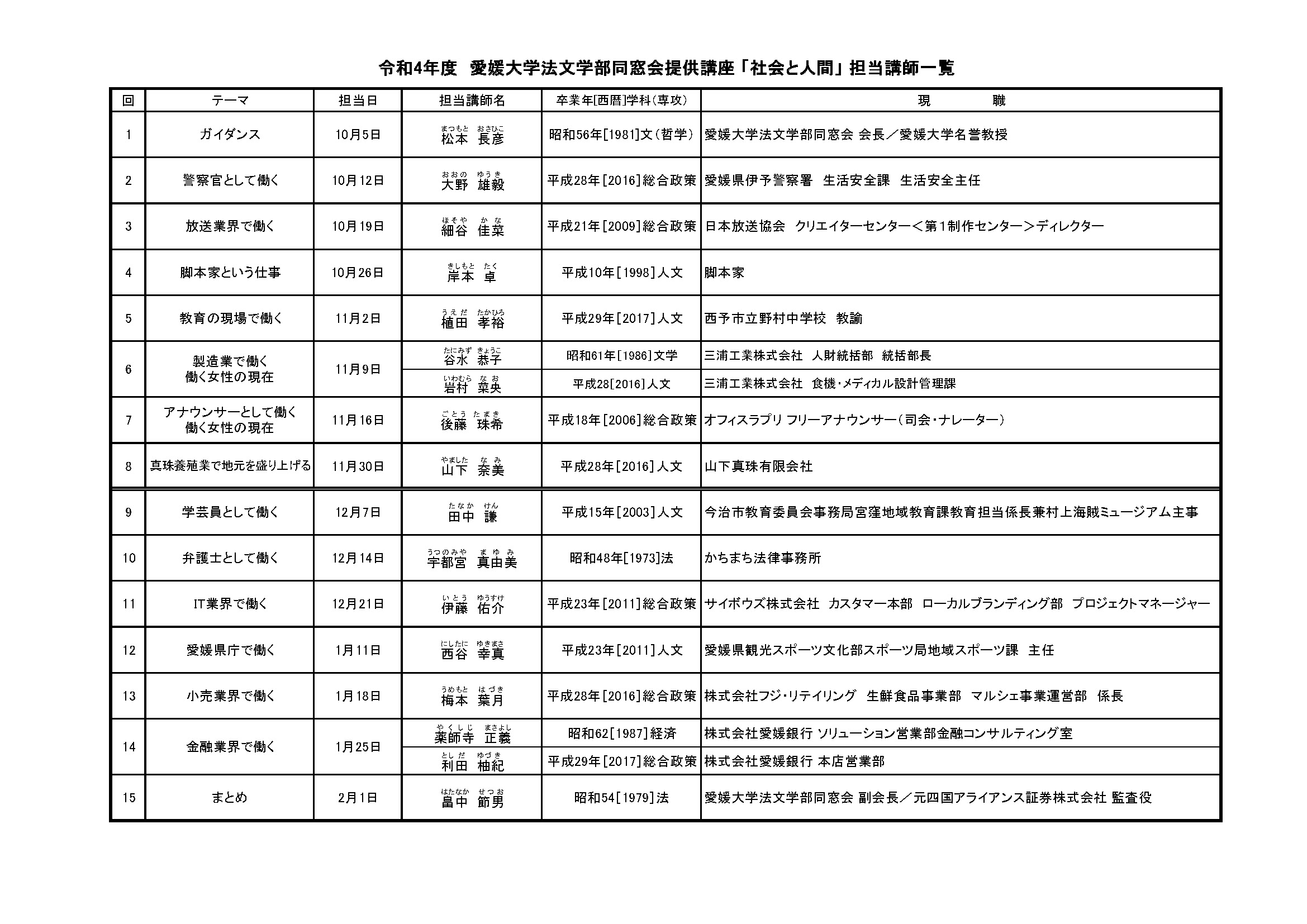2022年度同窓会提供講座『社会と人間』が終了しました。