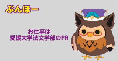 愛媛大学法文学部では、学部創立50周年を記念して、マスコットキャラクター「ぶんほー」を制定しました。いろいろなイベントで、愛媛大学法文学部の魅力を伝えていきます。みなさん、よろしくお願いします。(2019年1月現在) 【 […]