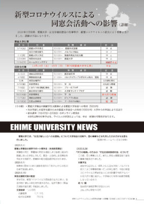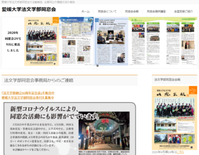 愛媛大学では新型コロナウイルスの影響で2020年は卒業式、入学式、学祭など主な行事は中止となり、法文学部の提供講座もオンラインとなりました。 法文学部同窓会も、参加する皆様の安全と健康を第一に考えた上で、理事会、総会等の […]