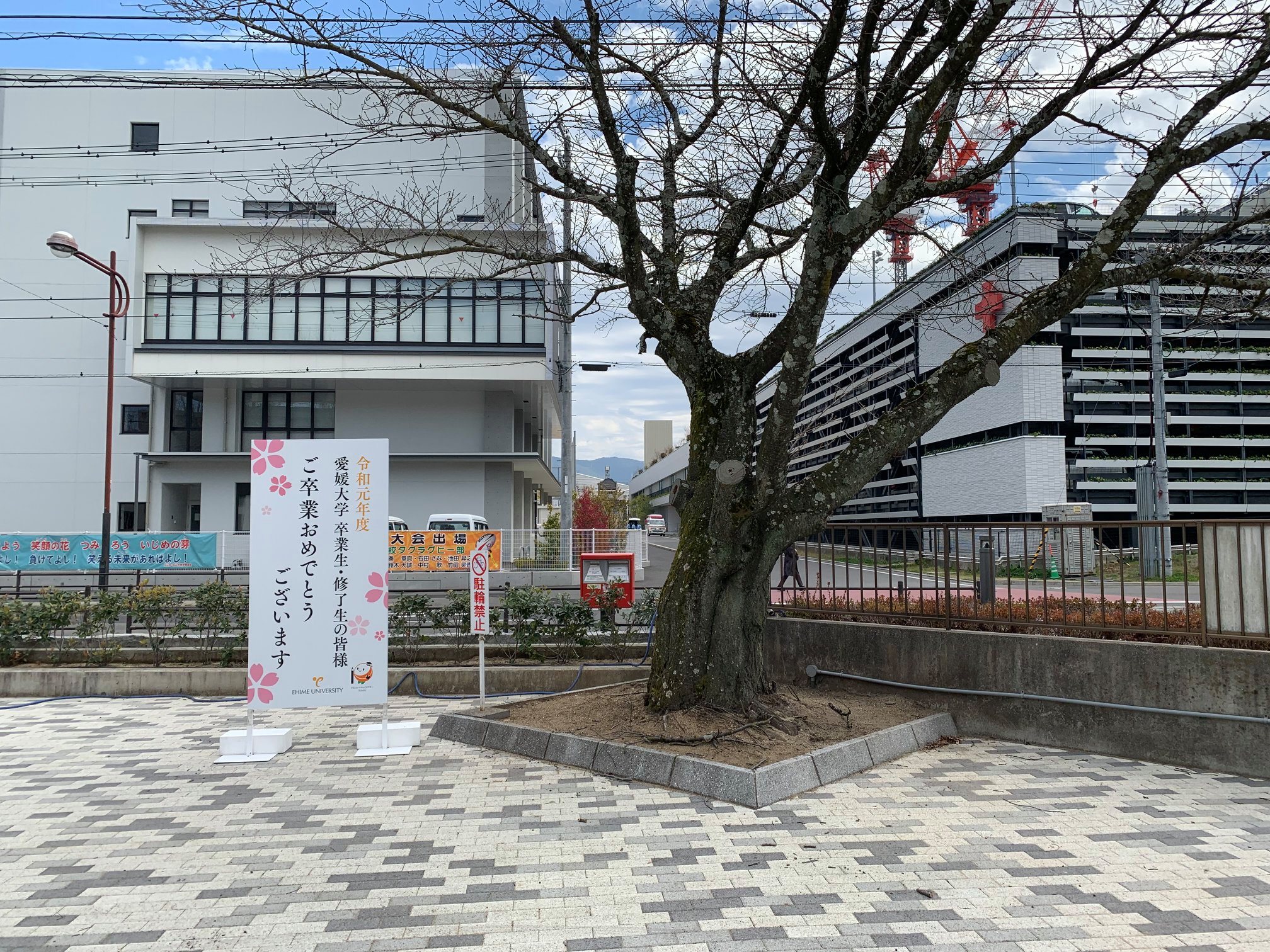 人生に一度しか無い大学の卒業式は中止。大学側の取り計らいで卒業記念パネルが学内複数箇所に設置されています。
