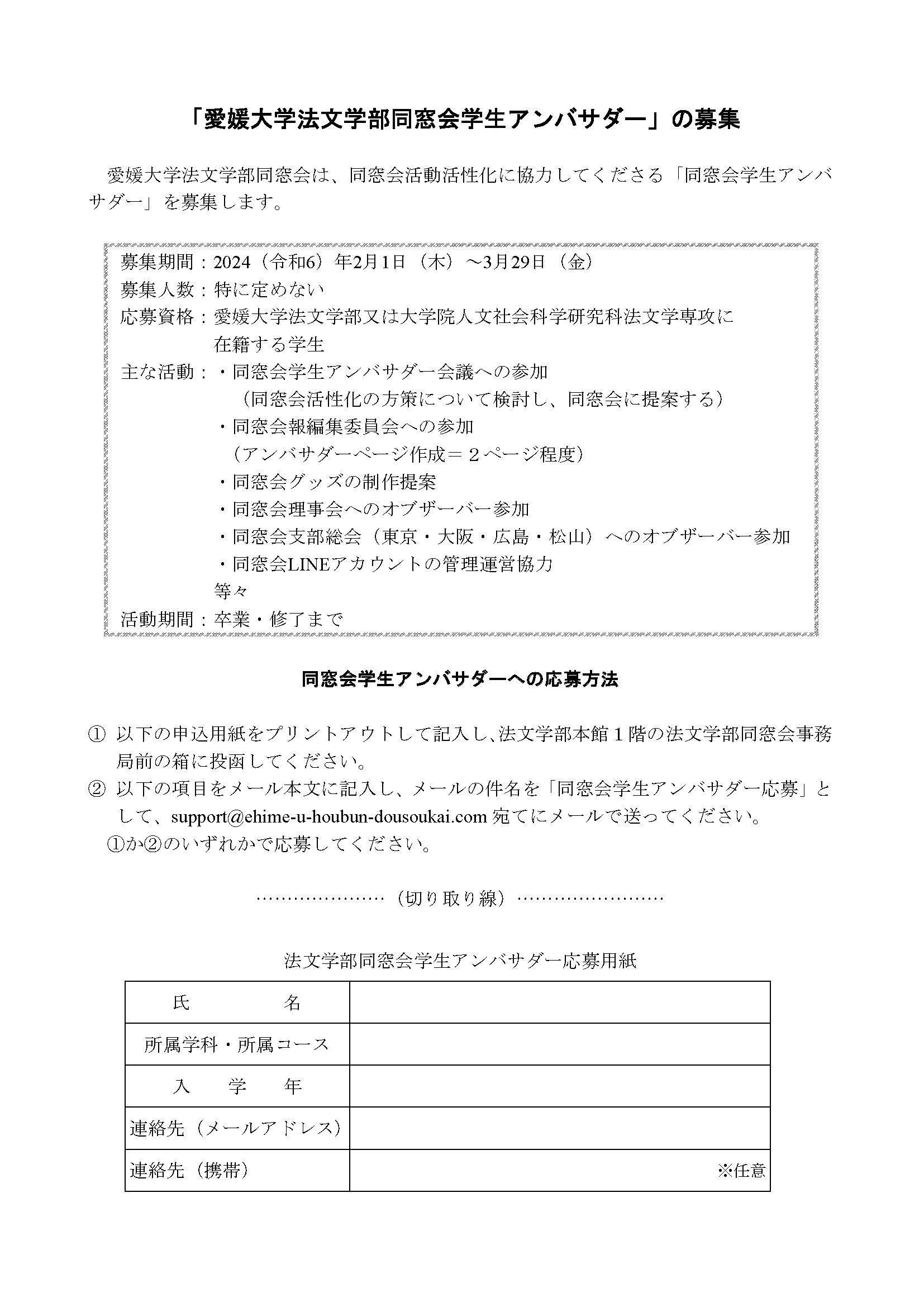 愛媛大学法文学部同窓会|2024学生アンバサダー募集!